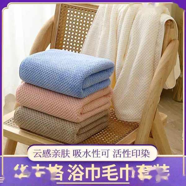 華夫格 浴巾毛巾套裝(一條浴巾+2條毛巾)