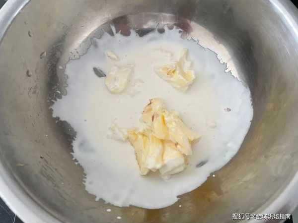 ▶step01:將黃油加淡忌廉隔水融化成液體