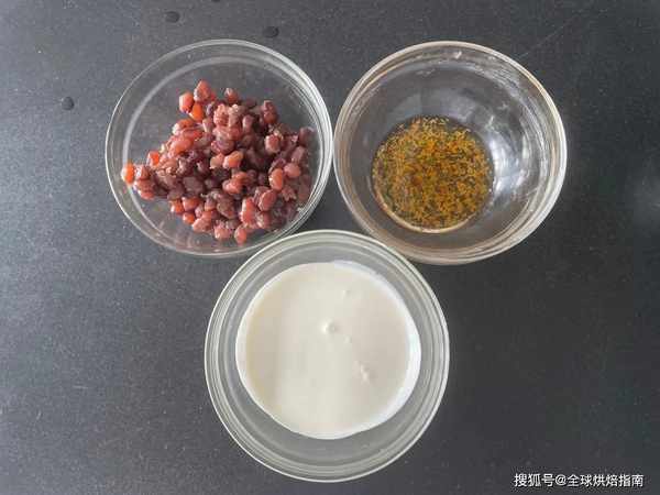 ▶step01:將紅豆,淡忌廉,桂花醬放到厚底鍋中燒至濃稠即可