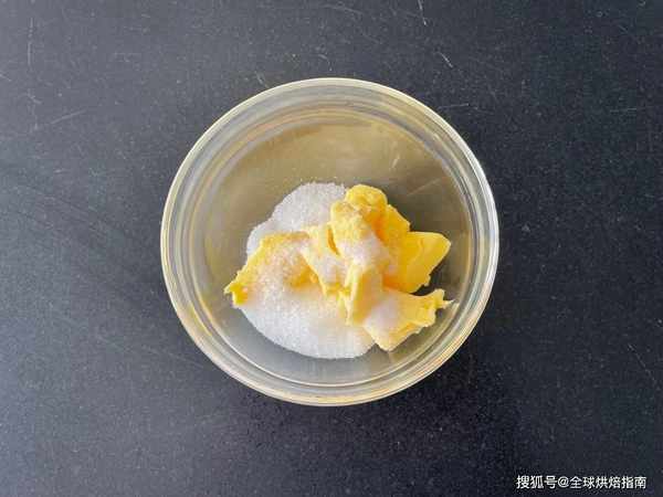▶step01:將黃油與砂糖,鹽攪拌均勻,加入雞蛋攪拌均勻