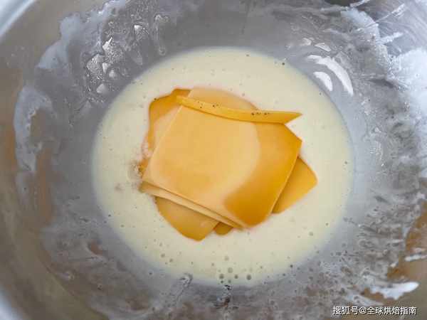 ▶step02:加入砂糖,芝士片隔水融化均勻即可