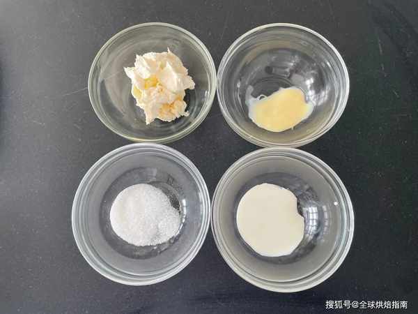 ▶step01:將乳酪和糖隔水融化,攪拌融化,加入煉乳,淡忌廉攪拌均勻即可