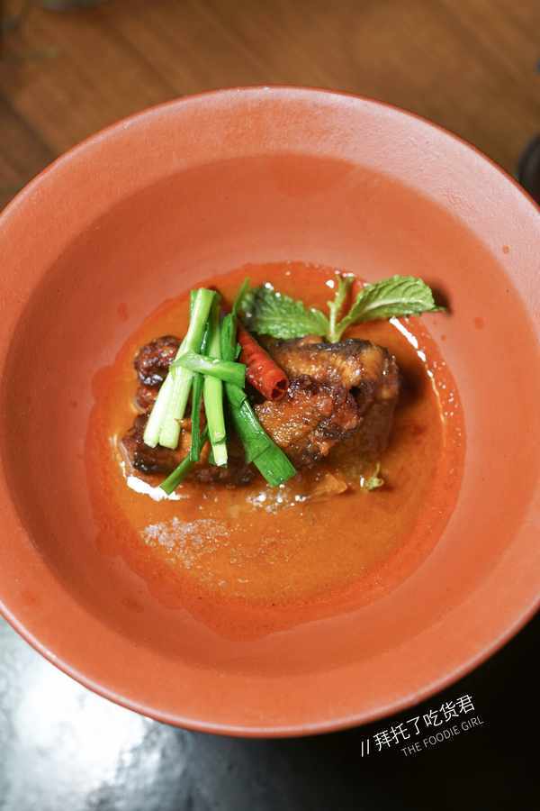 土鱔魚中富含鱔魚素,和香脆解饞又補膠原蛋白的雲南泡皮融合,以雲南三年老醬進行燜制,覆以醃漬後的野生棠梨花和春韭,醬香四溢中保有一抹綠意和清新。