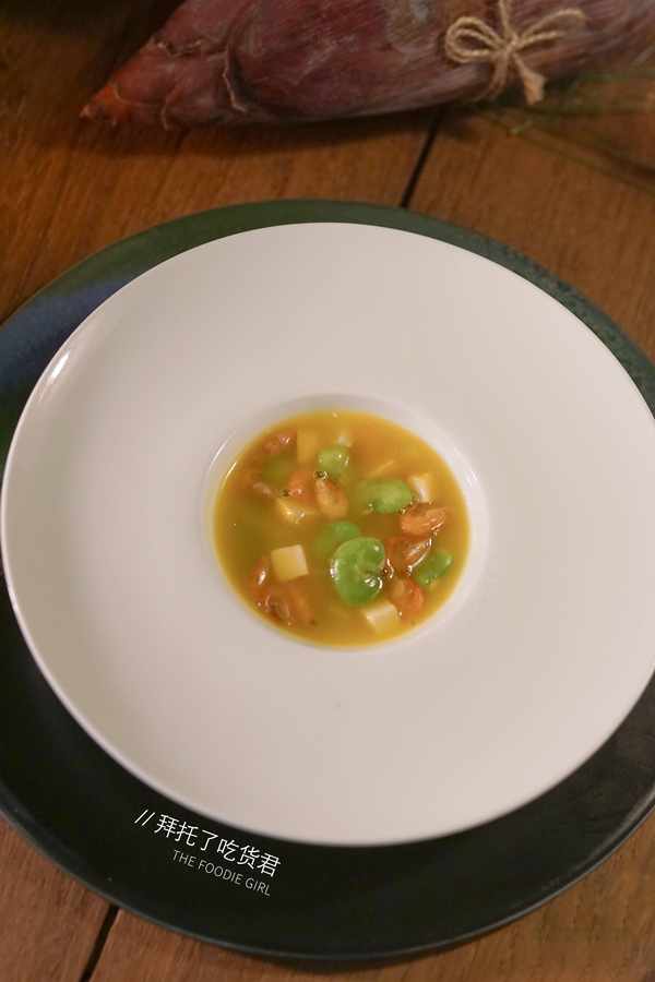 袖珍可愛的洱海生態小蝦,當季的雲南海菜與觀音山蠶豆米一起在雞湯中汆燙,春天花園的清新感撲面而來。