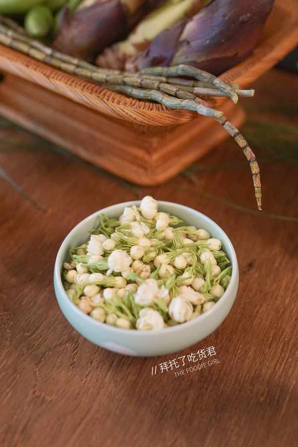 雲南刺老包與水牛奶輕煮,刺老包軟糯,水牛奶香醇,出鍋後撒入幾隻櫻花蝦,色彩亮麗,增香提味。