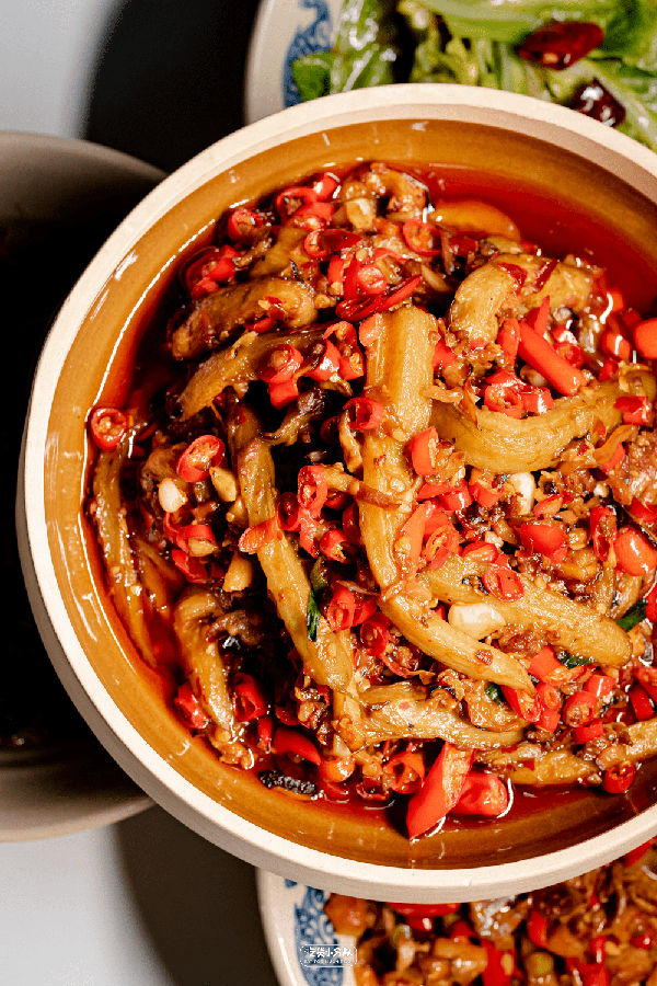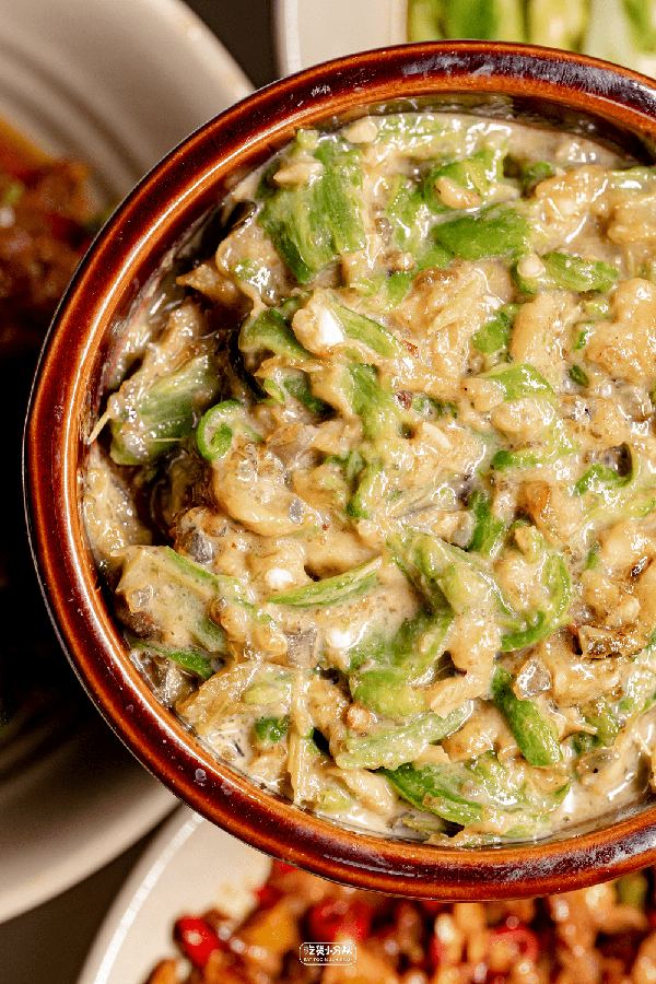 又叫擂椒皮蛋,雖然是辣椒,但卻是全場最不辣的下飯菜。茄子擂得很碎,青椒保留瞭部分脆度,皮蛋的存在感不是很明顯,另加瞭豆豉增添風味,拿來下飯還是杠杠滴。