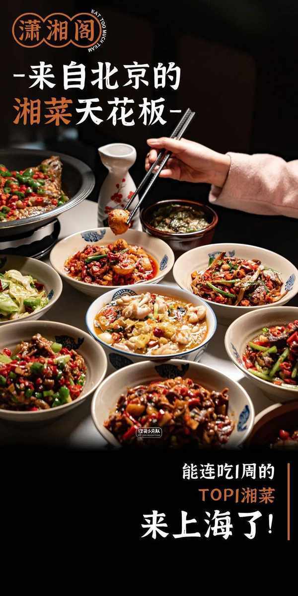 北京朋友紛紛認證的,北京湘菜界的天花板,常年霸占榜單TOP1的瀟湘閣,終於南下開來上海瞭。後廚是清一色的湖南班子,主打正宗湘菜,靠一手香辣味道,成為瞭在外打拼湖南人的快樂老傢。
