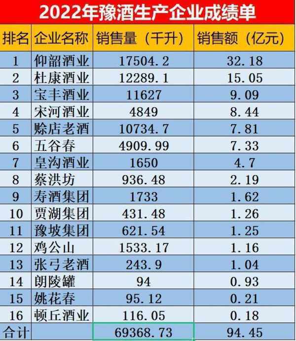 但進入新世紀後,在省外濃香型、醬香型白酒品牌的強勢擠壓下,豫酒的發展呈現疲態。河南省酒業協會發佈的數據顯示,2021年河南市場白酒消費量突破600億元,但本土品牌所占比例非常小。河南省商務廳發佈的16傢豫酒重點生產企業流通數據顯示,16傢企業2022年銷售額共計僅94.45億元,其中河南仰韶酒業有限公司(以下簡稱仰韶酒業)就貢獻瞭三分之一。
