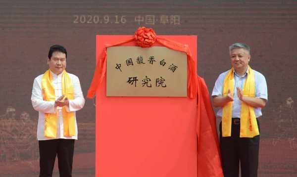 金種子集團黨委書記、董事長賈光明與時任江南大學副校長徐巖(右)共同為中國馥香白酒研究院揭牌。圖/雲酒頭條