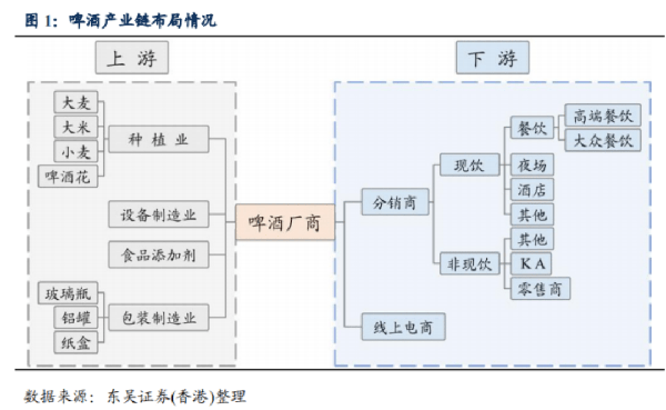 啤酒產業鏈分為上遊和下遊。