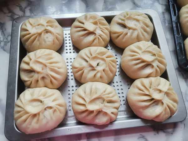 第八步:二次發酵好的包子,入鍋大約蒸20分鐘,熟透,拿出即成。一次吃不完可以冷藏保存,隨吃加熱即可,省時省力特方便。