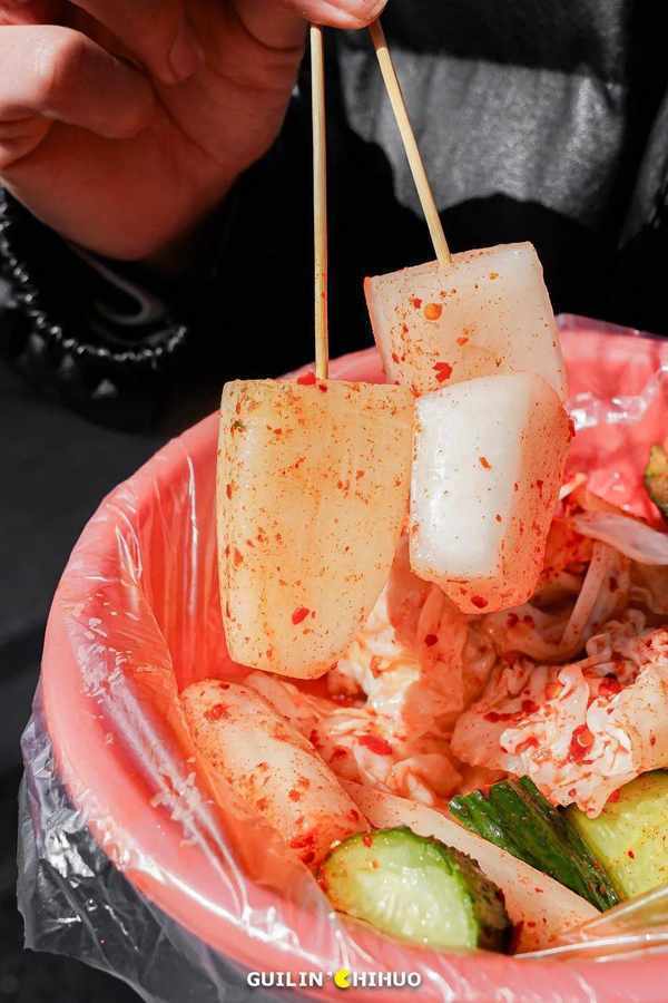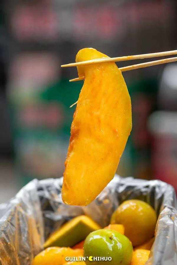 如果需要一個學名,那大概就是“酸嘢”,英雄難過美人關,美人難過酸嘢攤,隻要天氣稍微暖和一點,桂林的大街小巷就會憑空長出許多賣酸的小車車,總有一個要吸引你停下來。