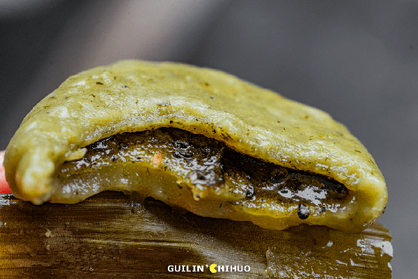 粑粑,在桂林可以指一切糯嘰嘰表皮的帶餡點心,比較常見的比如艾葉粑、水糍粑、豆粉粑、狗舌粑(狗舌粑有一種油炸的是沒餡的),甜的居多,咸的較少。