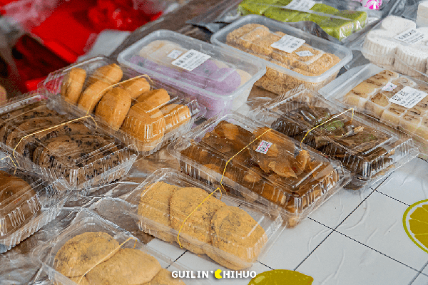 其餘的粑粑基本一年四季都有,有些專門的糕餅店會同時供應好幾類,搭著買,不知不覺一個人就能炫完,一個桂林人要是總瘦不下來,說不定和愛吃粑粑關系密切。