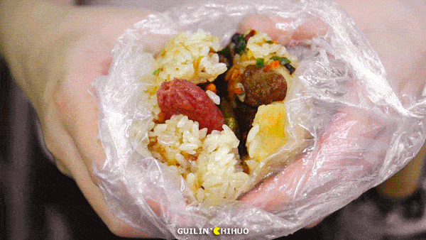 陷入甜咸之爭的不僅僅是豆腐腦,還有糯米飯這位“難兄難弟”。同樣是在煮熟的糯米中加料,桂林層次豐富的咸糯米飯可是獨具特色。