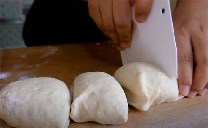 2.案板上撒些幹面粉,把面團揉搓成長條,再切成小面劑。