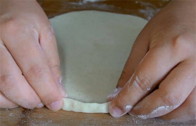 3.把每個小面劑給它揉勻揉圓瞭,按扁,搟成圓形的餅皮。