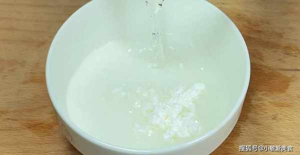 6、準備一個小碗,加入一勺的玉米淀粉,半碗清水,攪拌成淀粉水。