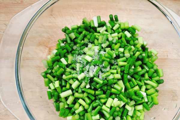 【小貼士】先用鹽醃制蒜薹,這一步千萬不要省略哦!