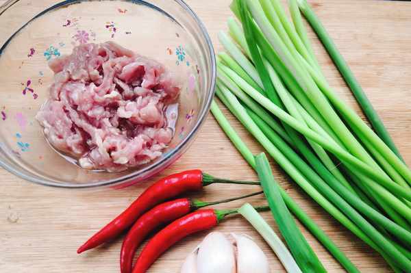 蒜薹200克(掐去頭尾)、肉末100克、紅米辣3-4隻、蔥蒜適量。