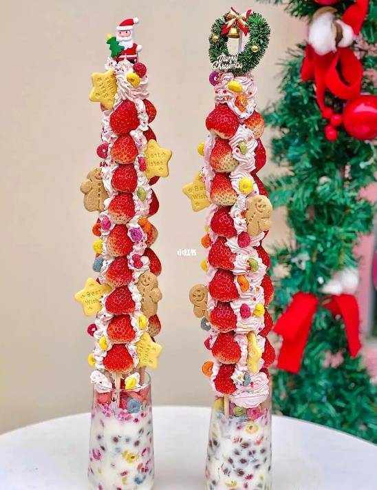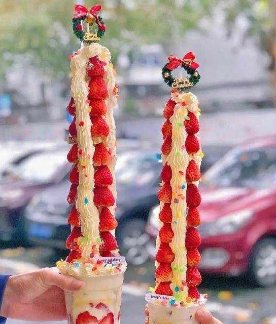 不知道什麼時候,網絡上又開始流行“草莓塔”這個梗,一大串紅紅的草莓,外面擠滿白色的奶油,很是誘人。每年一到聖誕季,草莓塔都會被拉出來秀一圈,十來顆草莓也賣出近百元的高價。