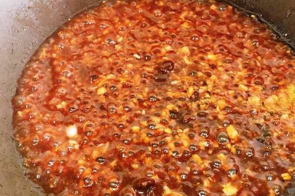 簡單翻炒好的料汁顏色很漂亮,味道也很鮮香,這道菜的靈魂所在。