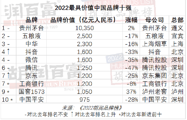 國窖1573品牌價值再度提升。4月3日,《2022胡潤品牌榜》發佈,國窖1573以1050億元品牌價值進入前十,排名上升至第九。此外,“瀘州老窖”品牌也以95億元品牌價值位列總榜單第131位。從價值增長的數額來看,國窖1573以285億元的增長額,成為2022年價值增長最多的品牌。