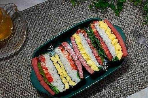 註:食材隨喜好可以隨意更改,比如芝士片,肉松,金槍魚,黃瓜,胡蘿卜等等,有啥用啥,想吃啥就放啥。