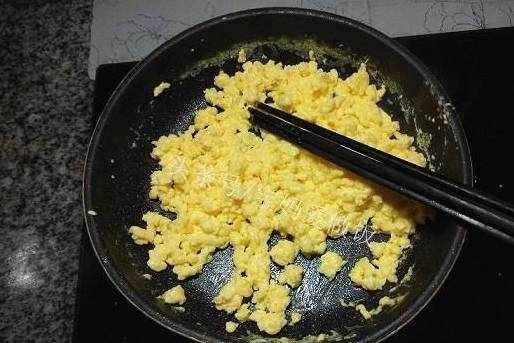鍋裡抹層薄油,倒入加瞭純牛奶的雞蛋液,開火,保持最小火,開始有點凝固瞭,就不停地用筷子劃圈攪動,都凝固後,炒得嫩嫩的,就可以盛出備用。
