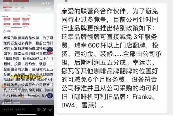 據網傳的合作信息顯示,如果是瑞幸的加盟商翻牌轉做庫迪咖啡,那麼將直接減免3年的服務費用,如果該門店能夠達到日銷600杯的水平線,庫迪還將承擔違約金及裝修等費用。
