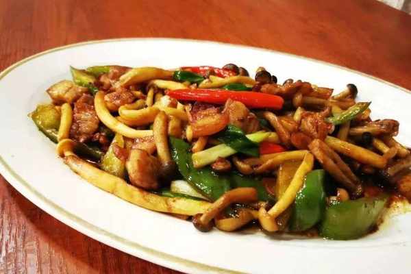 制作:五花肉切小丁、青圓椒切條、鍋入少許油薑蔥幹蔥冰糖水調料熬成燒汁入芝麻備用、鍋入油入蒜末肉末蟹味菇、白玉菇炒香入青椒、小米椒、入燒汁燒至湯汁粘稠即可。