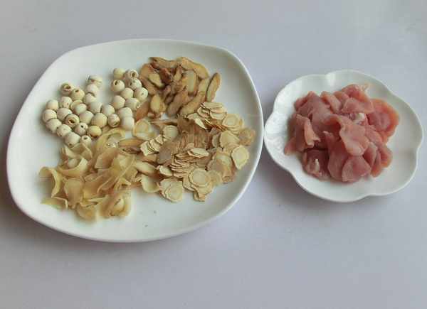 材料:百合25克、玉竹30克、白蓮子30克、花旗參15克、瘦肉100克