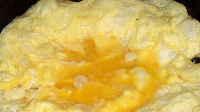 Tips:這一步要少倒水。加入蛋汁時,水沸騰,使雞蛋迅速凝固。煎出來的雞蛋又香又嫩,雞蛋不容易炸。