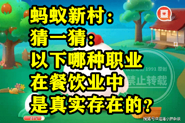 螞蟻新村答案:哪種職業在餐飲業中是真實存在