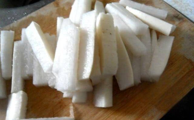 第一步:首先,將適量的白蘿卜洗凈,用刀將蘿卜去皮,切成約1厘米見方的小條,放入小碗中,然後加入適量的撒上鹽,將白蘿卜醃15分鐘左右。