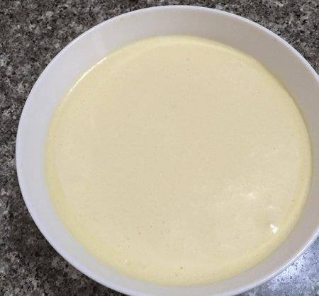 將混合好的液體倒入如圖所示的蛋液中,然後上下攪拌均勻