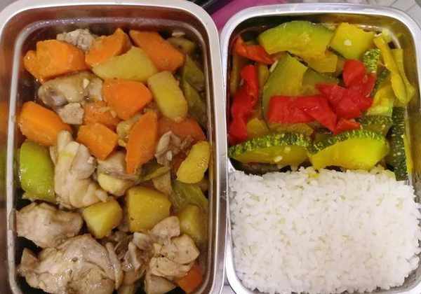 剛開始有一個同事要肖女士帶飯,她把自己的飯盒給瞭肖女士,肖女士吃什麼她就吃什麼。接下來每天下班後,肖女士就會去菜場多買一點菜,提前準備好,第二天就帶到公司去。