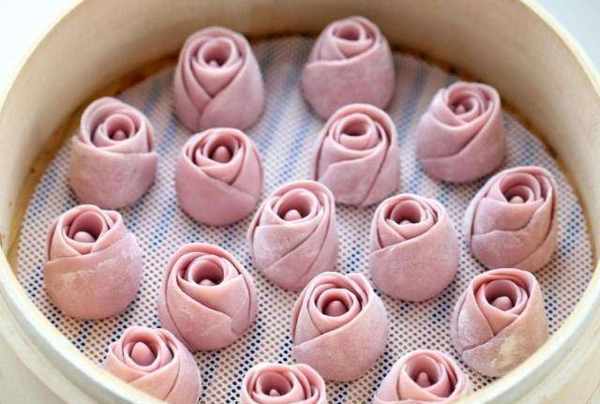 第六步:將做好的玫瑰花饅頭浸泡20分鐘,然後放入蒸鍋蒸20分鐘。