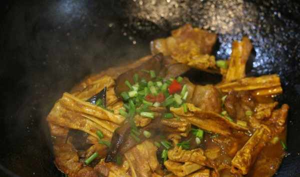 7、最後加入適量的水,水要能沒過所有食材,大火燒開之後,轉小火慢燉,期間再加入準備好腐竹下鍋。