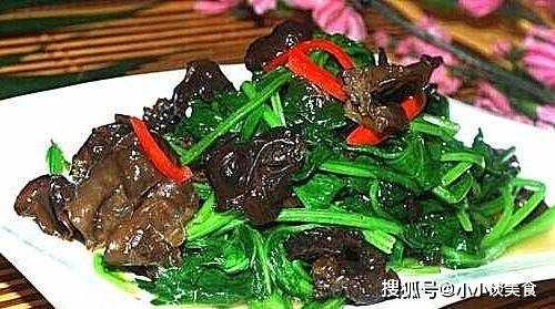 木耳能吸收和濃縮殘留在人體消化系統中的灰塵和雜質,並將其排出體外,從而達到清潔腸胃的目的。它還具有溶解膽結石、腎結石等內源性異物的重要作用。菠菜和蘑菇的搭配更有營養