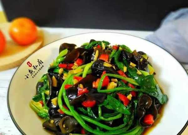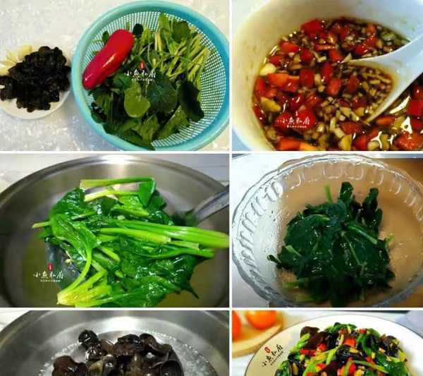 食材:黑木耳1小撮菠菜3棵紅椒大蒜薑