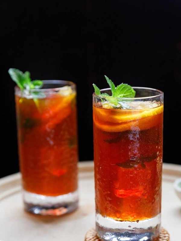 第八步:杯子裡加做好的檸檬成品,將提前提煉好的紅茶水加入適量,直接沖入純凈水,加滿冰塊,就是一杯健康的檸檬冰紅茶水瞭。