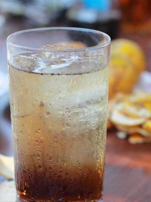 第三步:凝固好的果凍用勺子弄碎,放入杯子裡,倒入椰汁加冰塊即可。