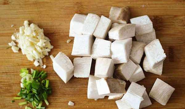 【做法】1、杏鮑菇切塊,蒜剁碎,豬肉剁碎,小蔥剁碎備用。