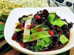 1、黑蘑菇用水洗凈,撕成小花;生菜和老葉去皮,洗凈切條。