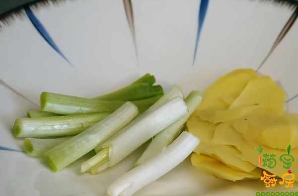 第三步:準備十顆左右的大蒜,去皮後切成大塊,生薑切片,大蔥切段備用。準備40克冰糖,分成兩等分。接下來調制醋汁,大碗中加入一勺料酒,三勺陳醋,糖和醋的比例是4:3,這樣做出來的排骨糖醋味道比較適中,半勺老抽上色,一勺生抽調味,最後倒入200毫升的清水攪拌均勻,糖醋汁就調好瞭,放在一旁備用。