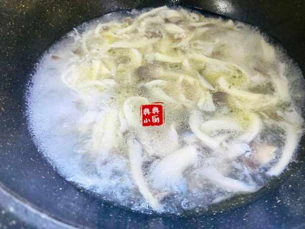 一次性加入足量的清水,燒開之後把上過漿的瘦肉片放進去,繼續燒煮至瘦肉片變色。