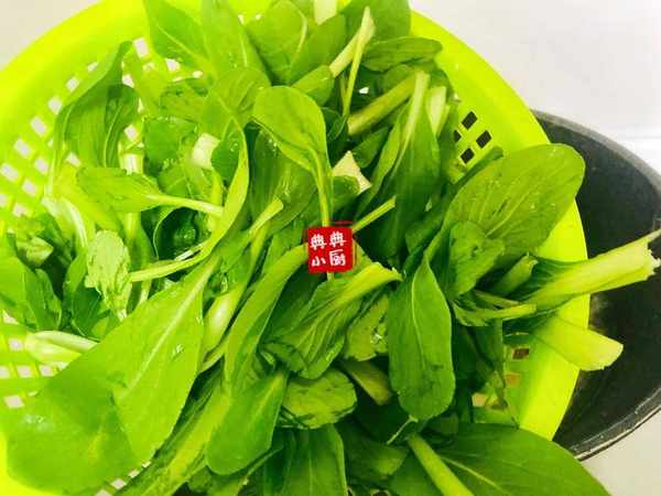 等鍋裡湯再次煮開之後把青菜倒進去,加一點鹽提味關火就可以瞭。