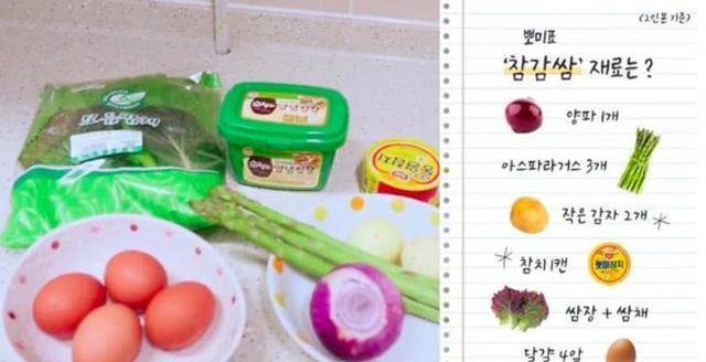 吃的時候隻要把炒好的食材放在蔬菜上,然後再蘸點黃豆醬就好瞭!感覺非常好吃呀~普美也好可愛呀!