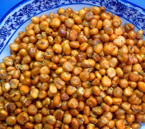 苞谷泡兒,分兩種,一種是炸開的,叫“開花的”,類似影院裡賣的爆米花,白花花的。另一種沒有炸開,保持瞭苞谷籽兒的原狀,叫“啞子”。開花的疏松一些,老人們愛吃,啞子比較緊實,但更脆、更香,小孩子喜歡。苞谷泡兒除瞭給小孩子當零食,也可當幹糧,農忙時節,地裡活多,沒時間做午飯,就嚼幾把苞谷泡兒,喝幾杯開水,也能當一頓飯。另外也可以上磨磨成粉,叫“炒面”,吃的時候,加糖,用開水泡開,類似藏族同胞的糌粑,外出的人隨身攜帶,很是方便。